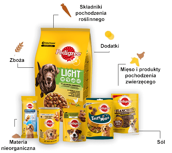 Mięso i produkty pochodzenia zwierzęcego, których używamy do produkcji karmy Pedigree®, zawsze pochodzą od zwierząt, które zgodnie z prawem unijnym, są dopuszczone do spożycia przez ludzi.